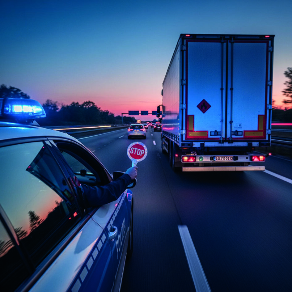 Schwerwiegende Verstöße, die eine sofortige Unterbrechung der Fahrt erfordern. Beispiele: Austreten gefährlicher Stoffe (Leckagen), vollständig fehlende ADR-Dokumentation oder kein ADR-Führerschein des Fahrers. Solche Fälle bedeuten akute Lebensgefahr, schwere Verletzungsgefahr oder erhebliche Umweltschäden und führen zum sofortigen Stopp des Fahrzeugs durch die Behörden.